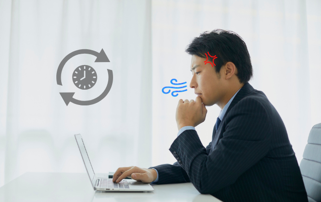 長時間の座り仕事、ストレス、浅い呼吸、内臓の緊張、冷え。